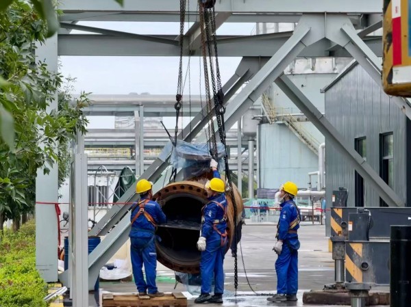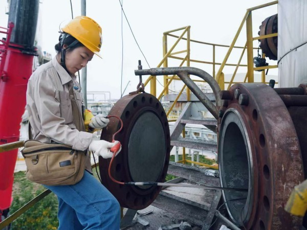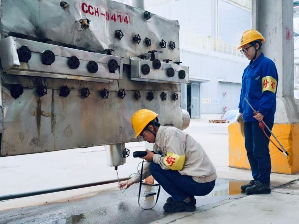 705工段的樓梯口,幾名檢修工人正圍著設(shè)備默契協(xié)作——遞扳手、校零件、查接口,無需過多言語,一個眼神便懂彼此需求;706框架的上層平臺,檢修人員系著安全帶俯身作業(yè),挺拔的身姿在鋼架間格外亮眼;分析人員同樣勁頭不減,她們背著儀器穿梭在各個點位,時而蹲身記錄數(shù)據(jù),時而俯身核驗結(jié)果,哪怕加班加點也毫無怨言?!安慌屡K、不懼累”的模樣,藏著對工作的認真,更讓人忍不住心生敬佩。